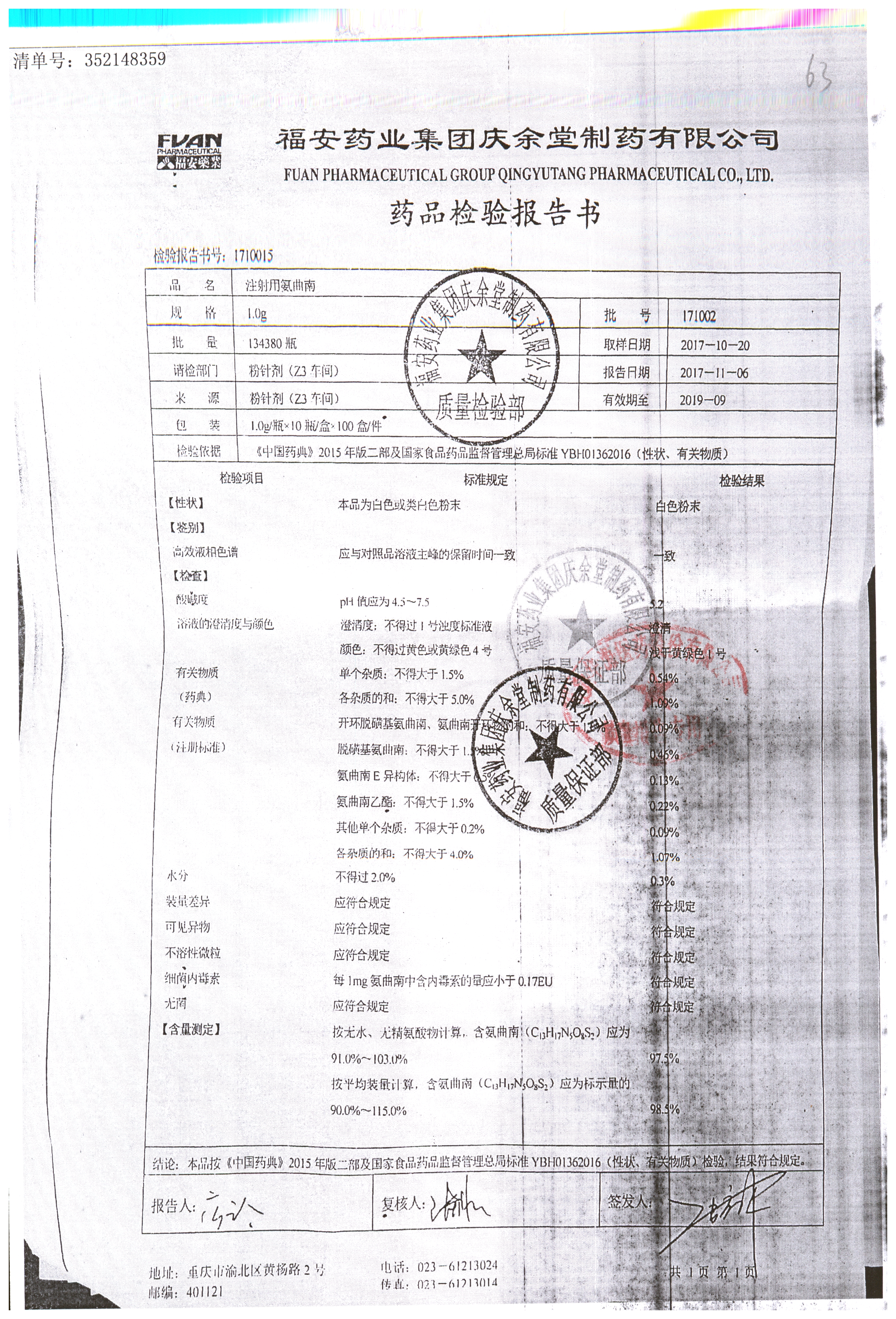| 注射用氨曲南 | 1.0g | 171207 | 查看詳情 |