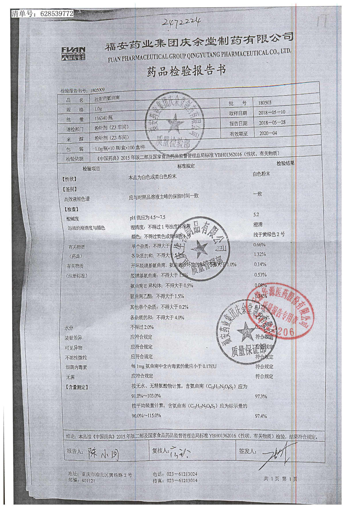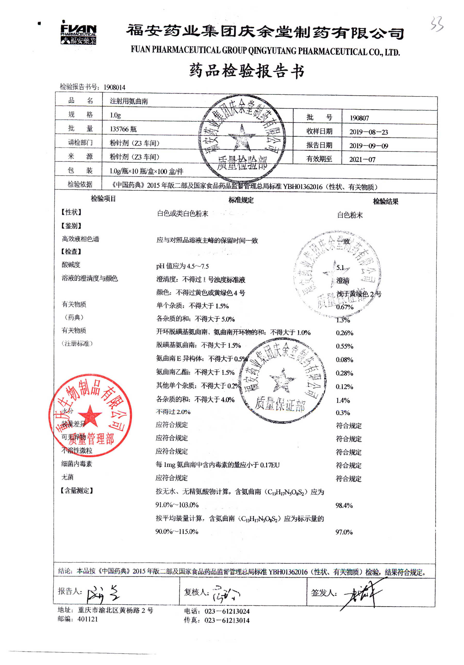 | 注射用氨曲南 | 1.0g | 190903 | 查看詳情 |