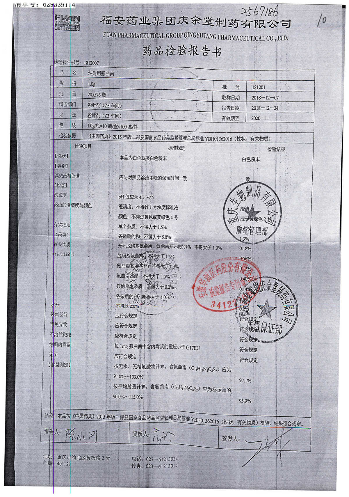 | 注射用氨曲南 | 1.0g | 181201 | 查看詳情 |