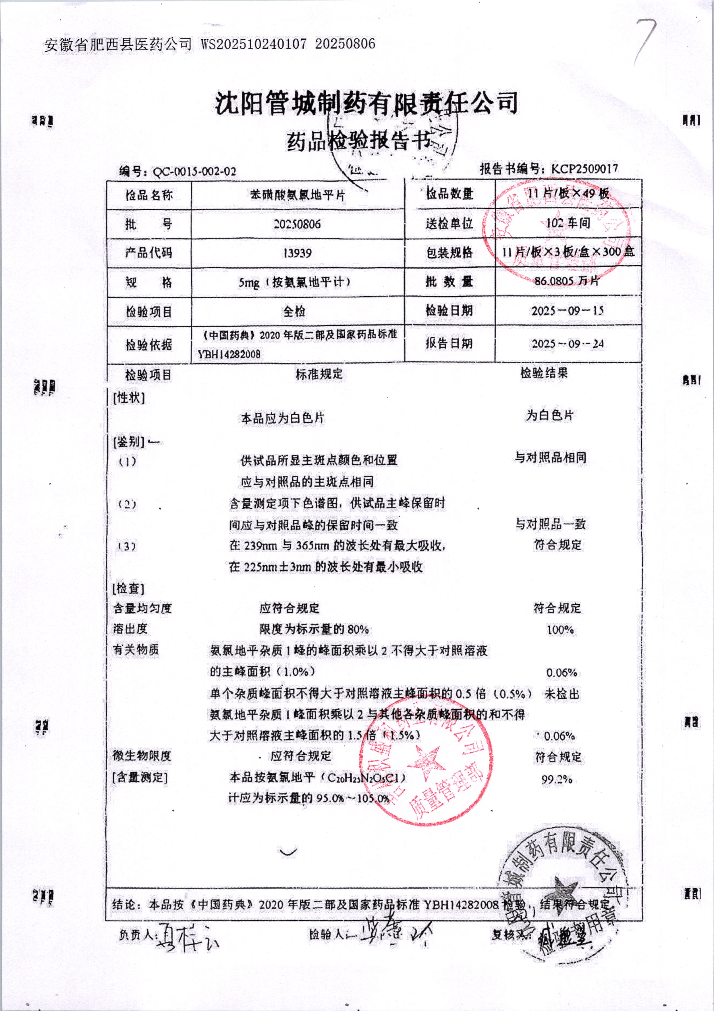 苯磺酸氨氯地平片 36片 20250710 查看詳情