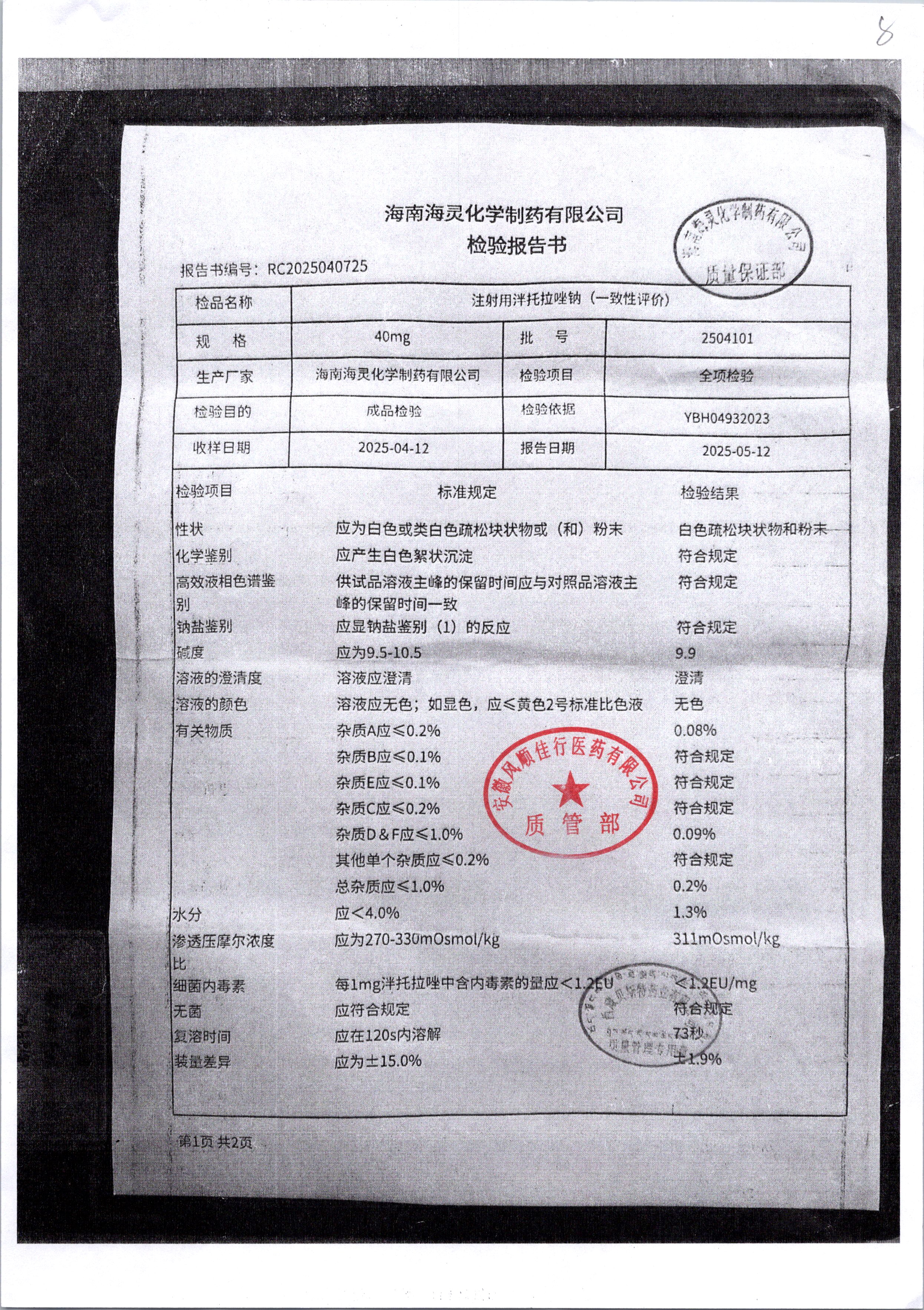 名稱 規格 批號 藥檢報告