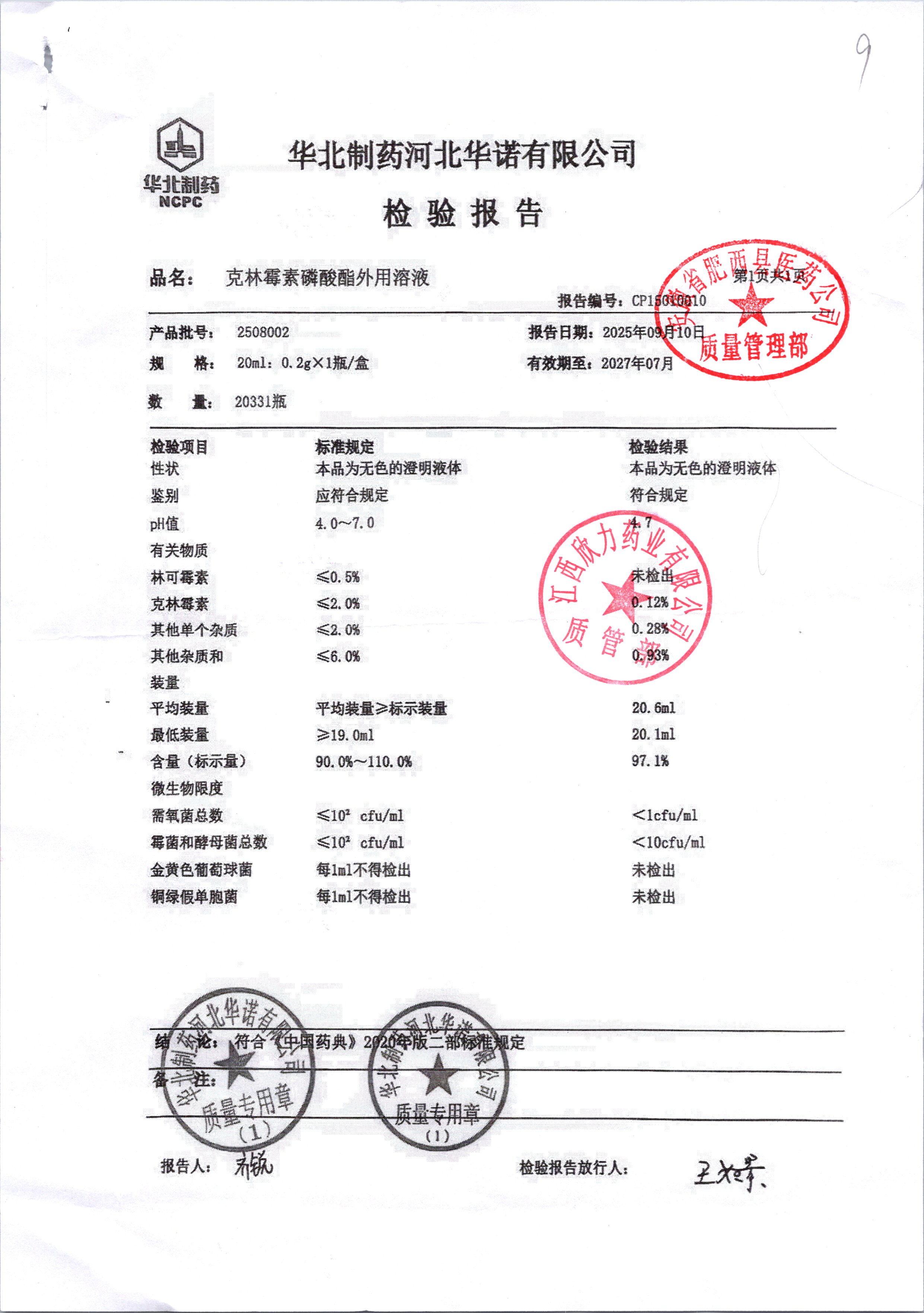 名稱 規格 批號 藥檢報告