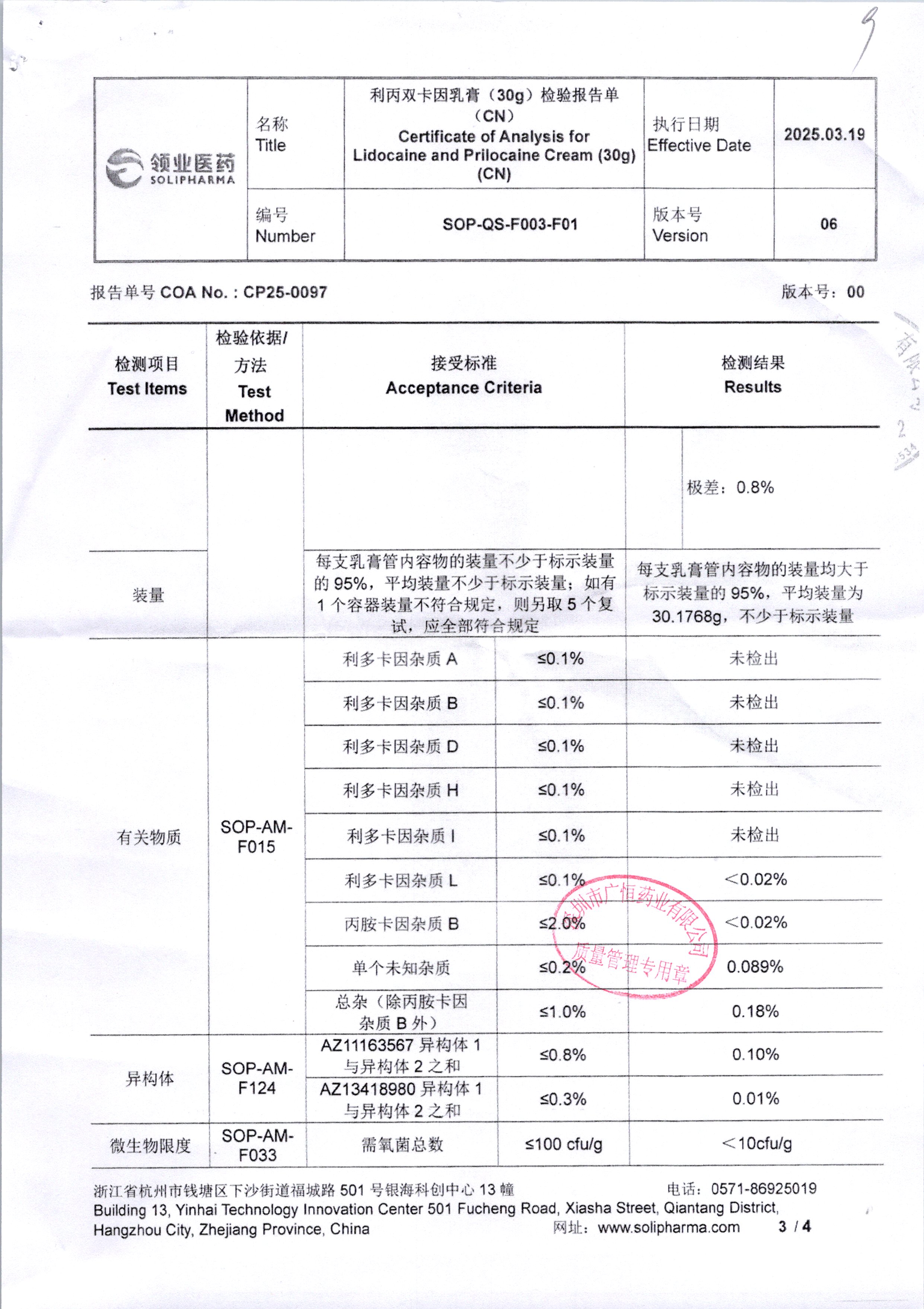 利丙雙卡因乳膏 30g 4250808/3 查看詳情