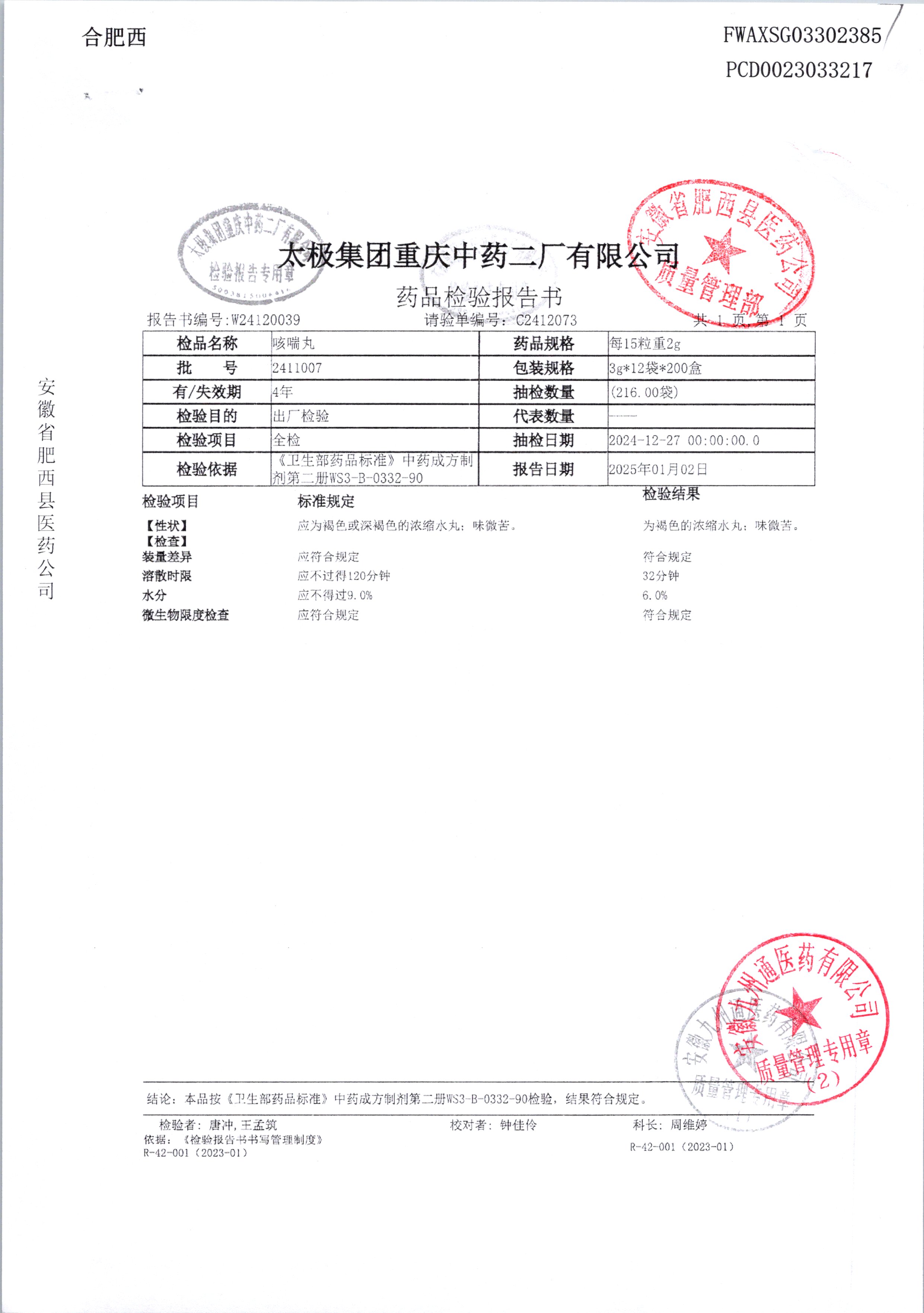 咳喘丸 3g*12袋 2411007 查看詳情