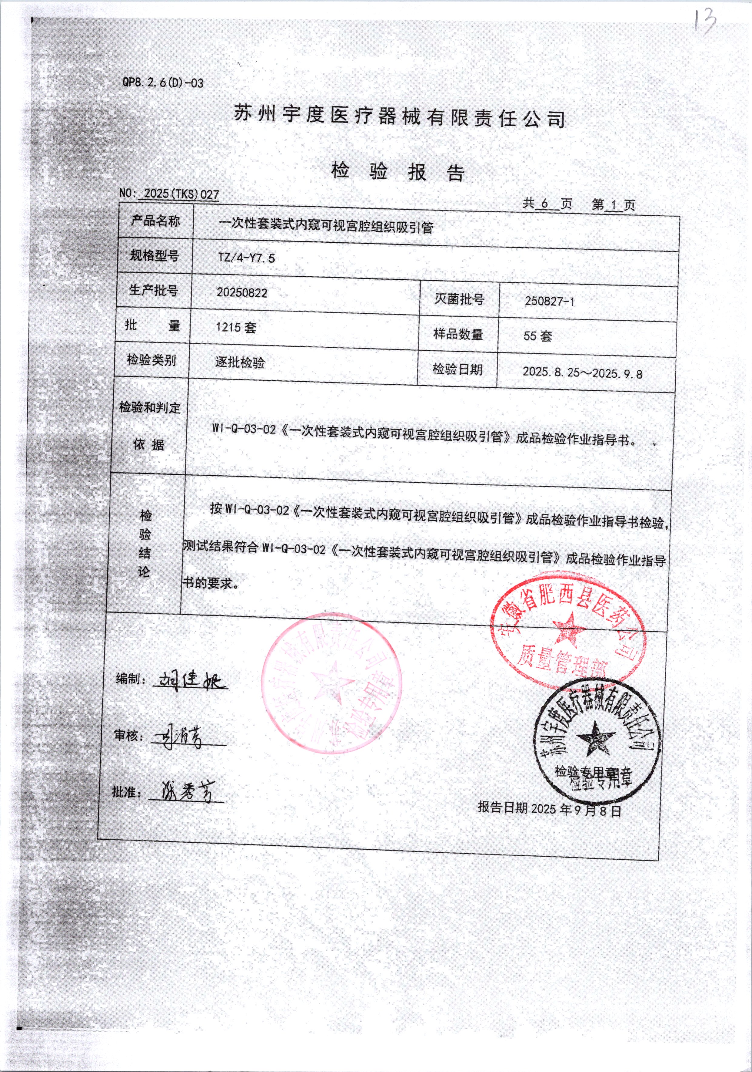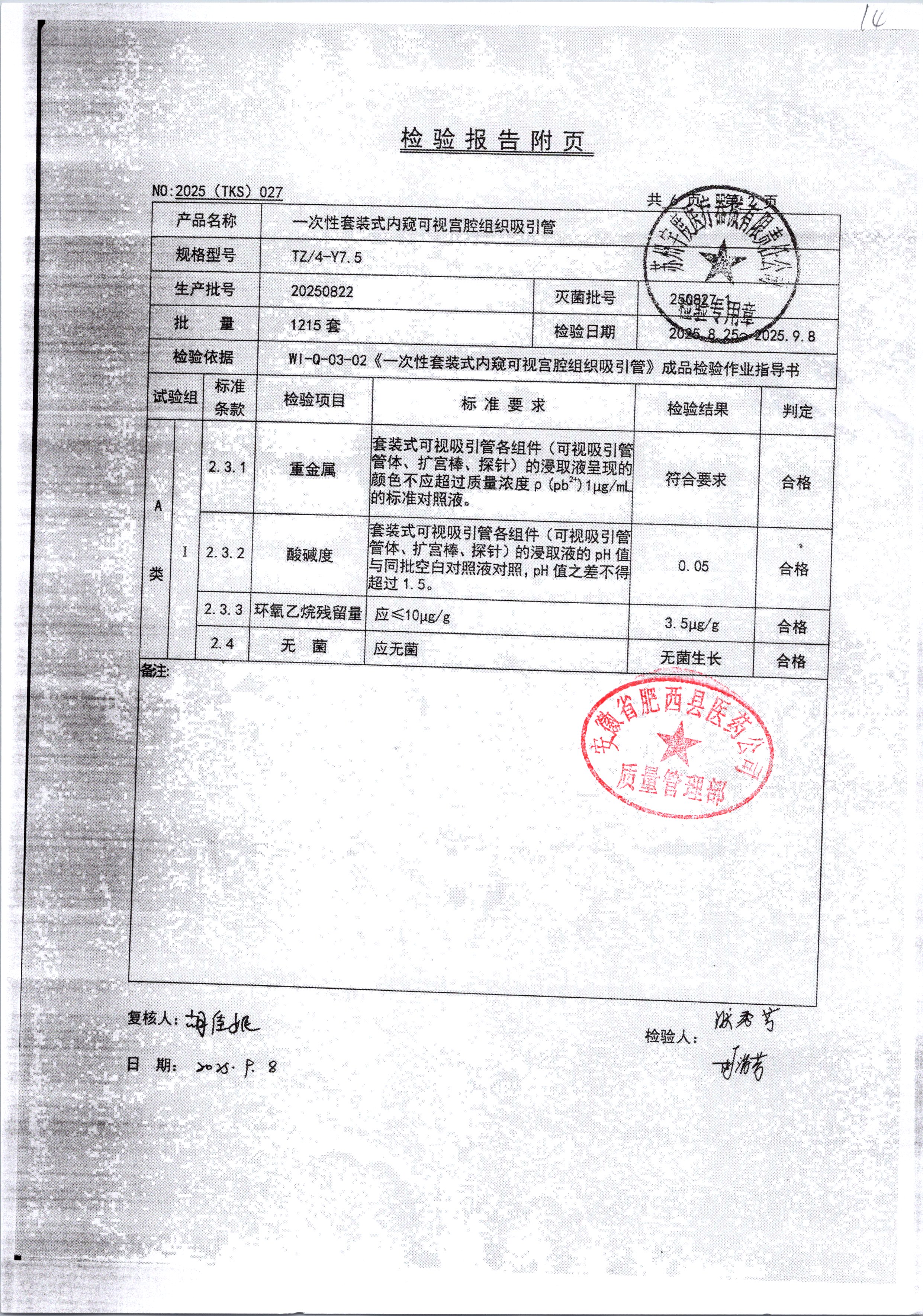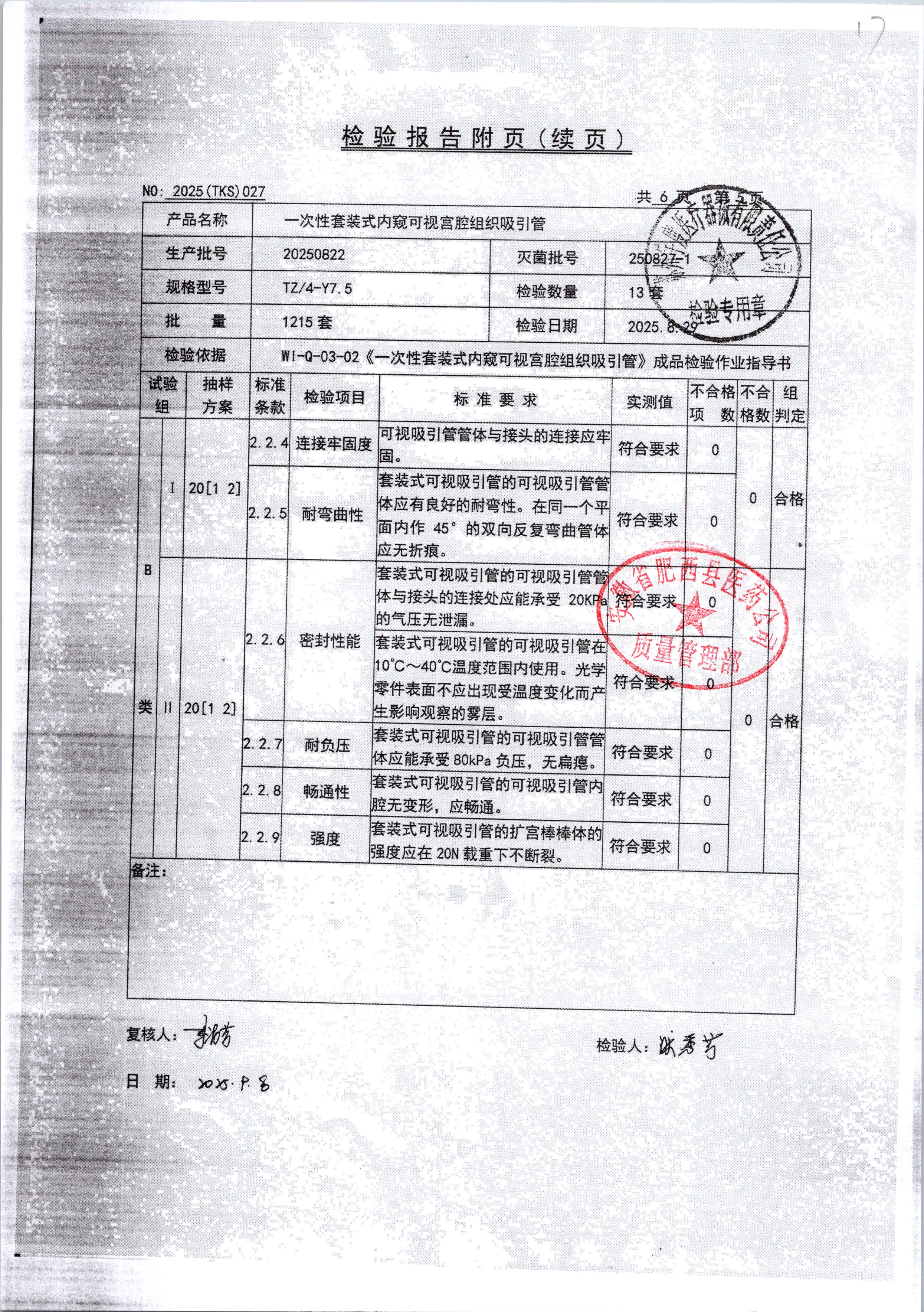 | 一次性套裝式內窺可視宮腔組織吸引管 | TZ/Y7.5 | 20250822/1 | 查看詳情 |