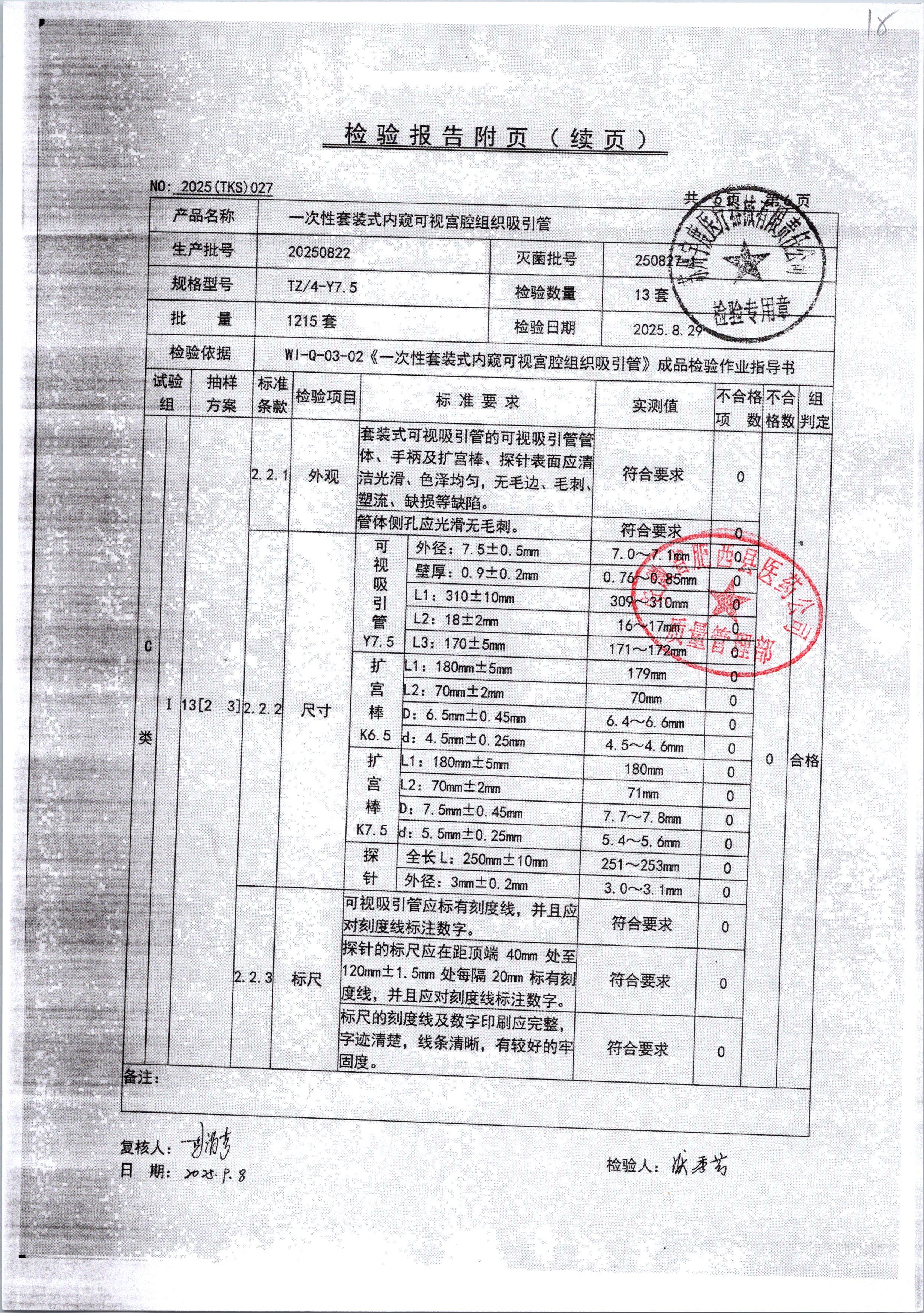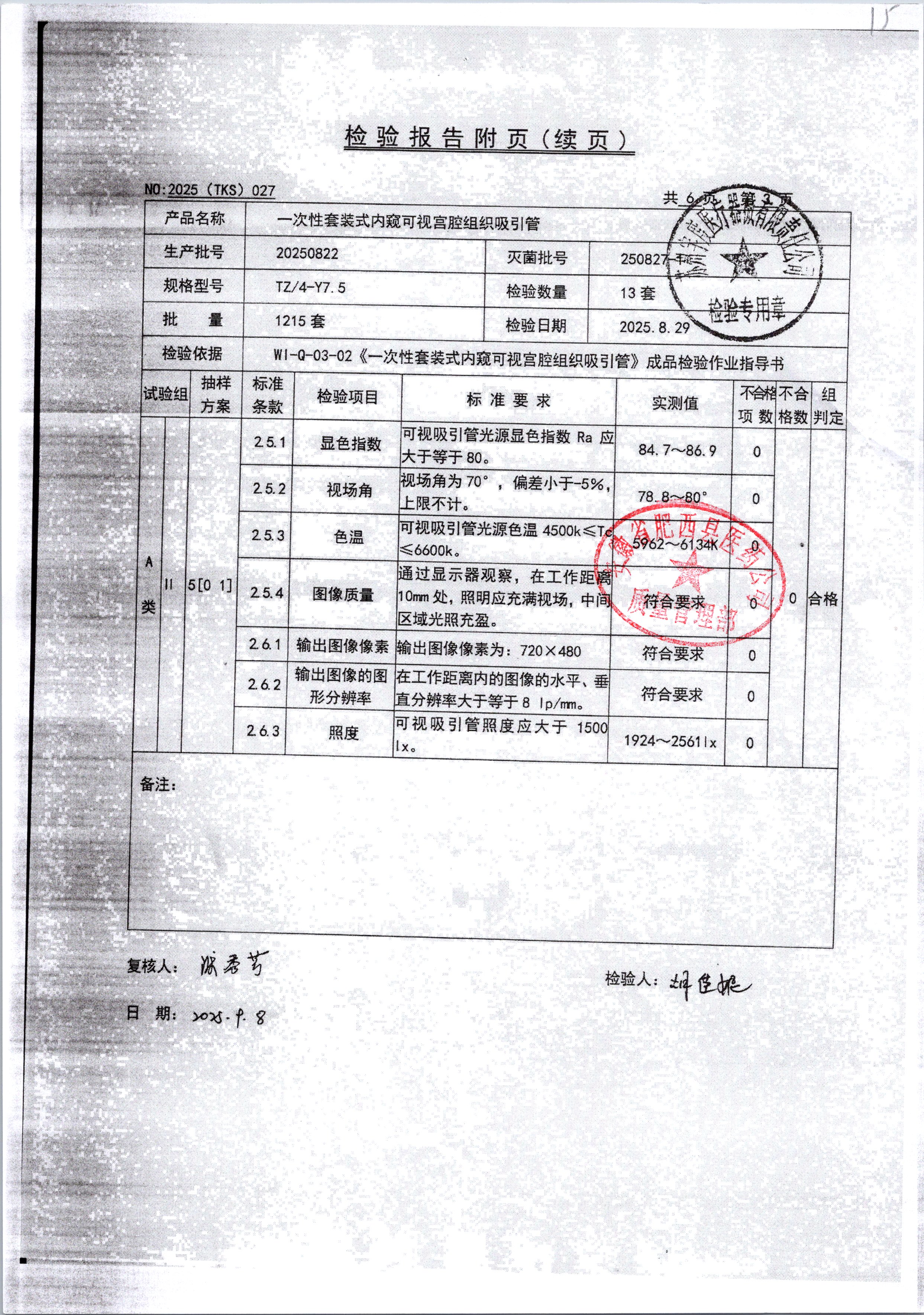 | 一次性套裝式內窺可視宮腔組織吸引管 | TZ/Y7.5 | 20250822/5 | 查看詳情 |