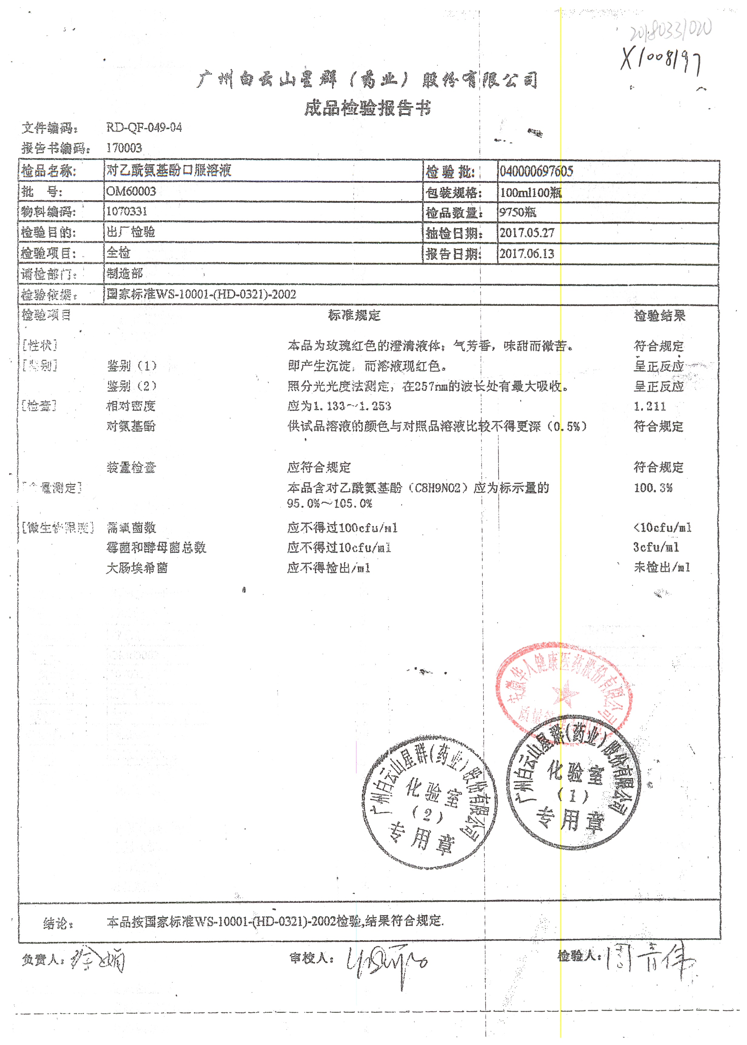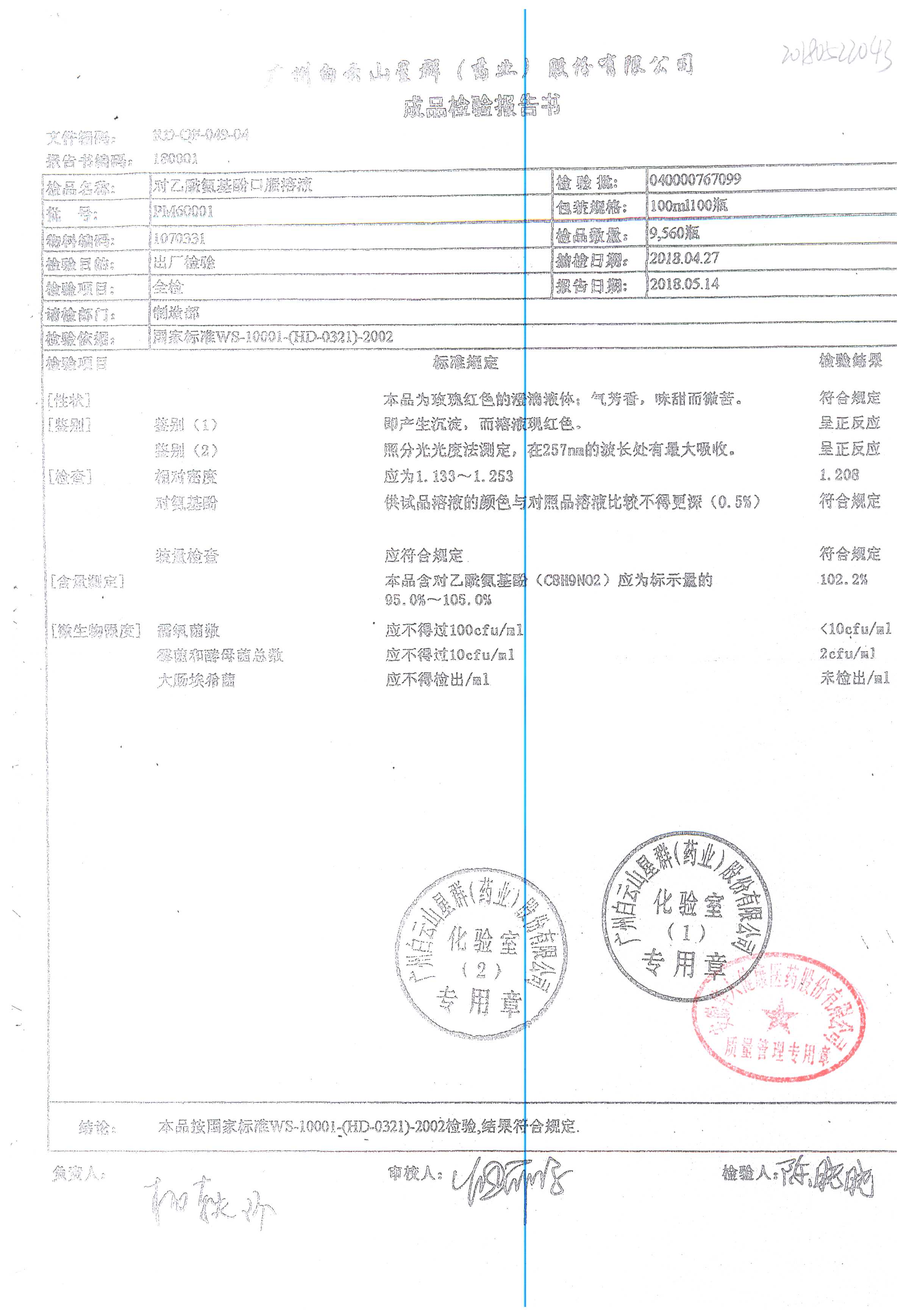 對乙醯氨基酚口服溶液 100ml OM60003 查看詳情