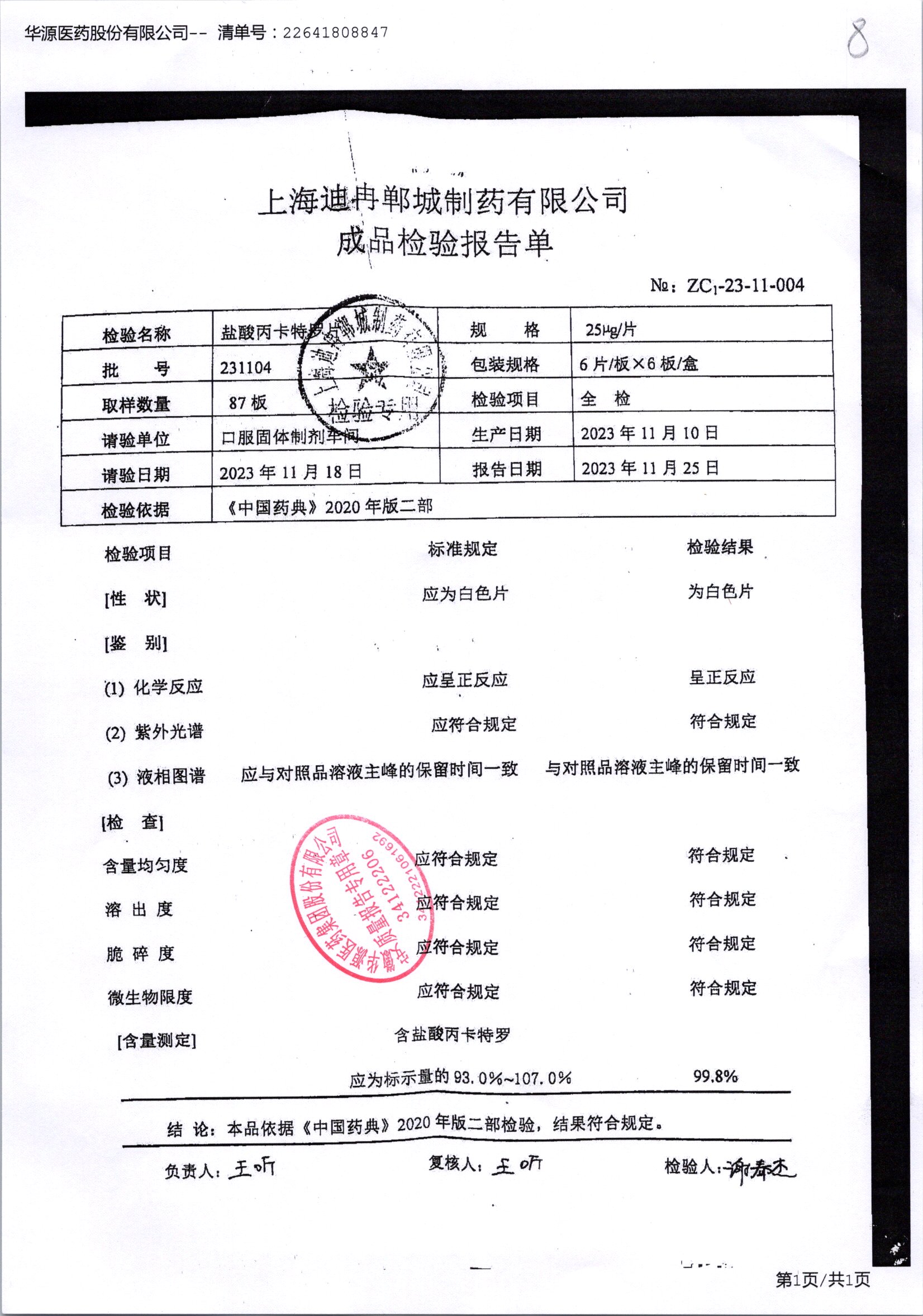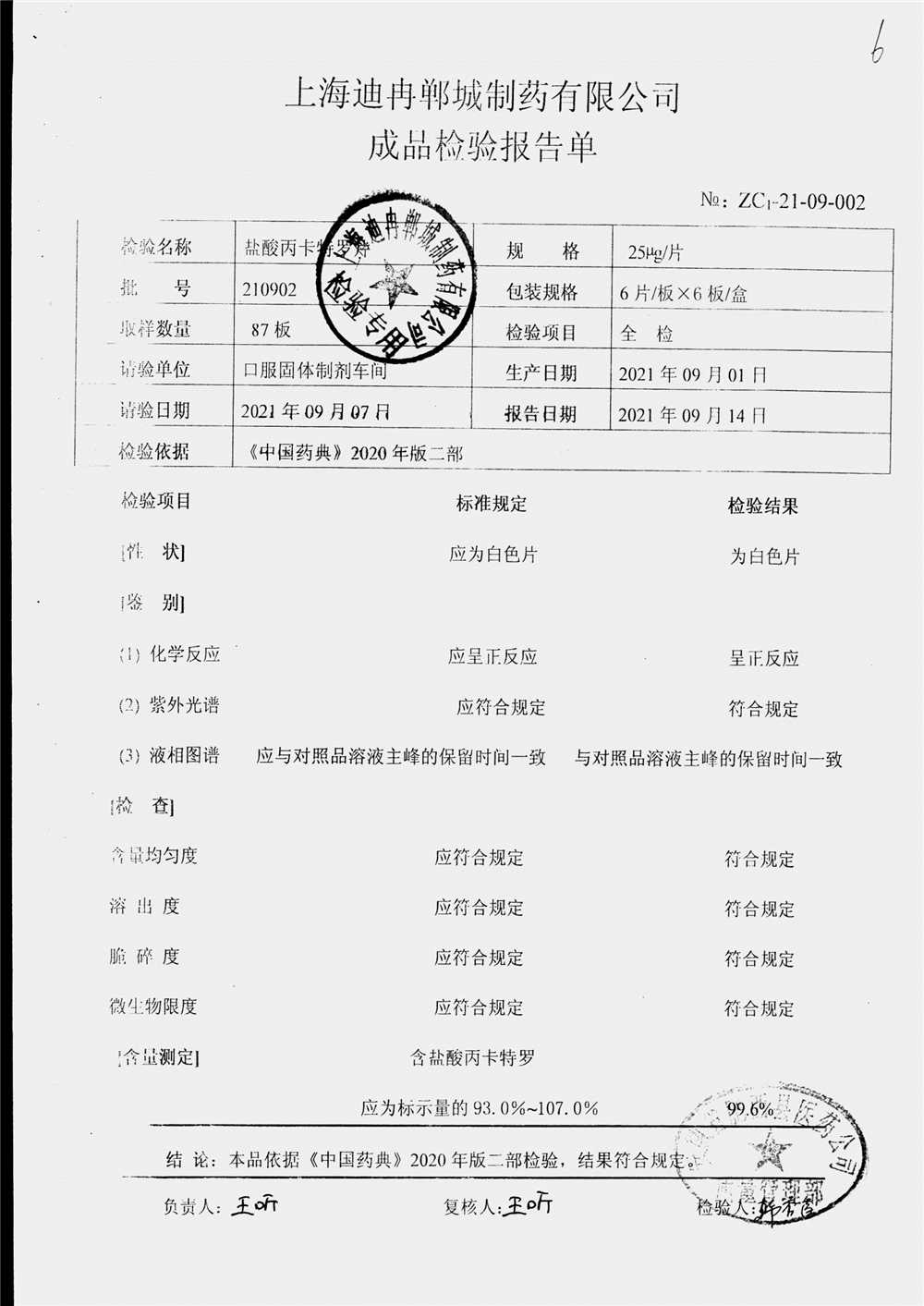 | 鹽酸丙卡特羅片 | 25mg*6s | 210902 | 查看詳情 |