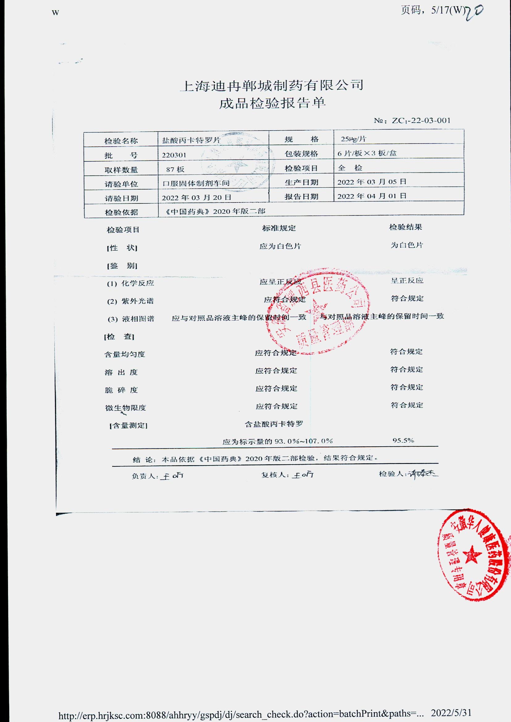 | 鹽酸丙卡特羅片 | 25mg*6s | 220301 | 查看詳情 |